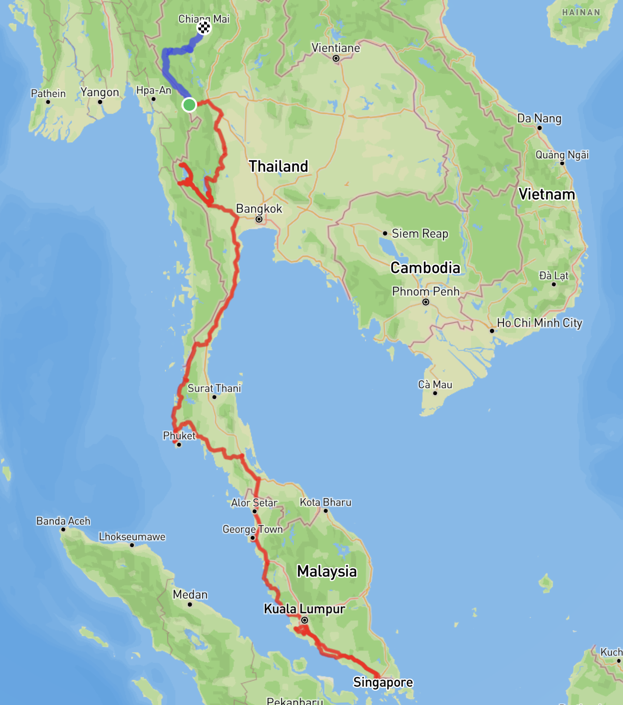 I reached Chiang Mai after another 4 hours of riding. The final stretch from Hot to Chiang Mai was ironically not hot at all - the rain turned into a downpour, and the roads started flooding. While my gear held up okay (save my gloves which are not waterproof), i could not see through my visor! And riding with the visor up wasn’t an option either (the droplets were big enough to be painful when riding at ~100kph, and quite blinding). I slowed down and pushed on.