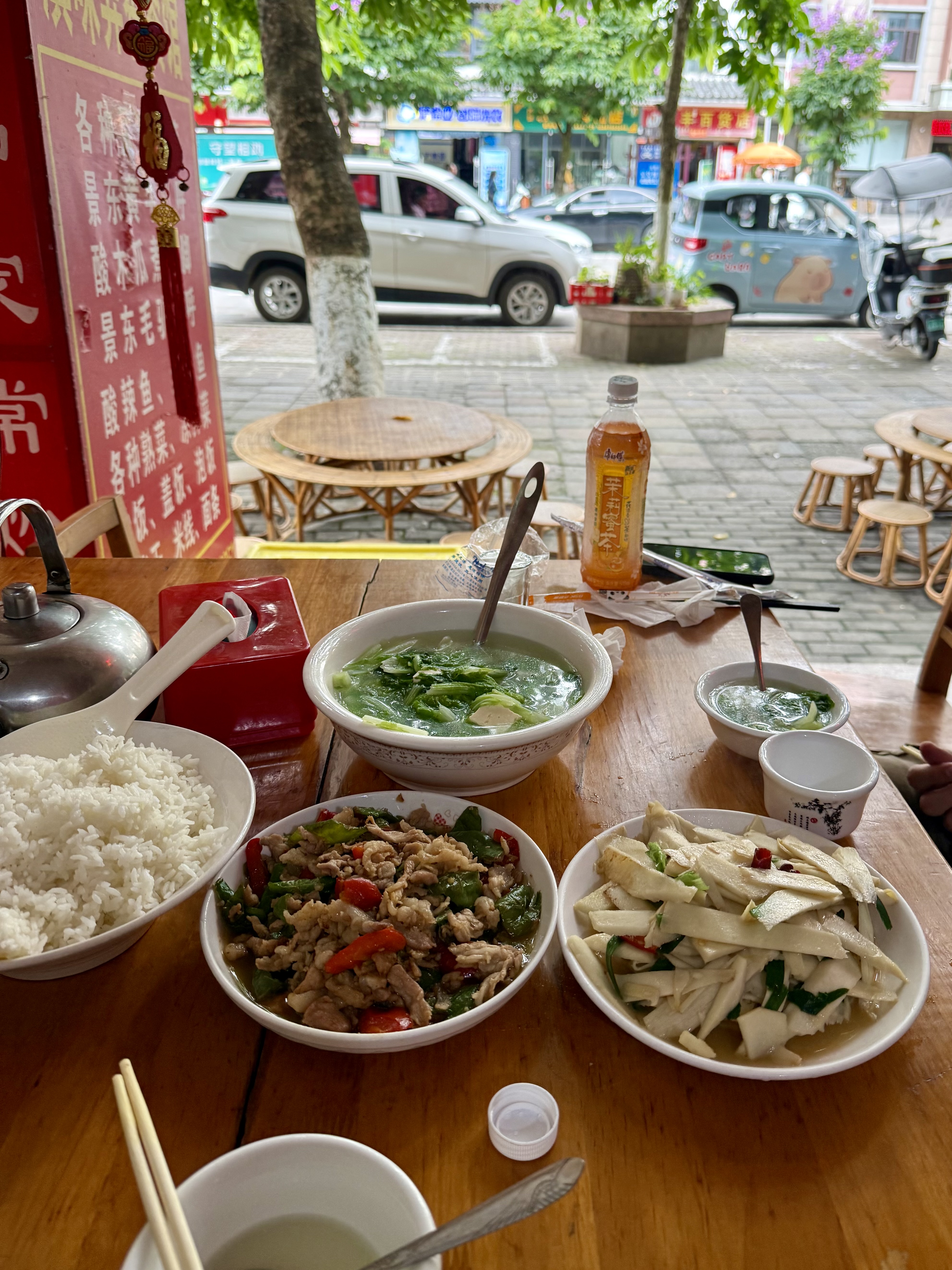 We reached Pu’er at 11:30AM, and it was much smaller than I had envisaged. It counts as a tier 4/5 city (smaller than Xi Shuang Ban Na I think), and we enjoyed some traditional Yunnan food; vegetable tofu soup, stir fry pork, and some bamboo shoots.