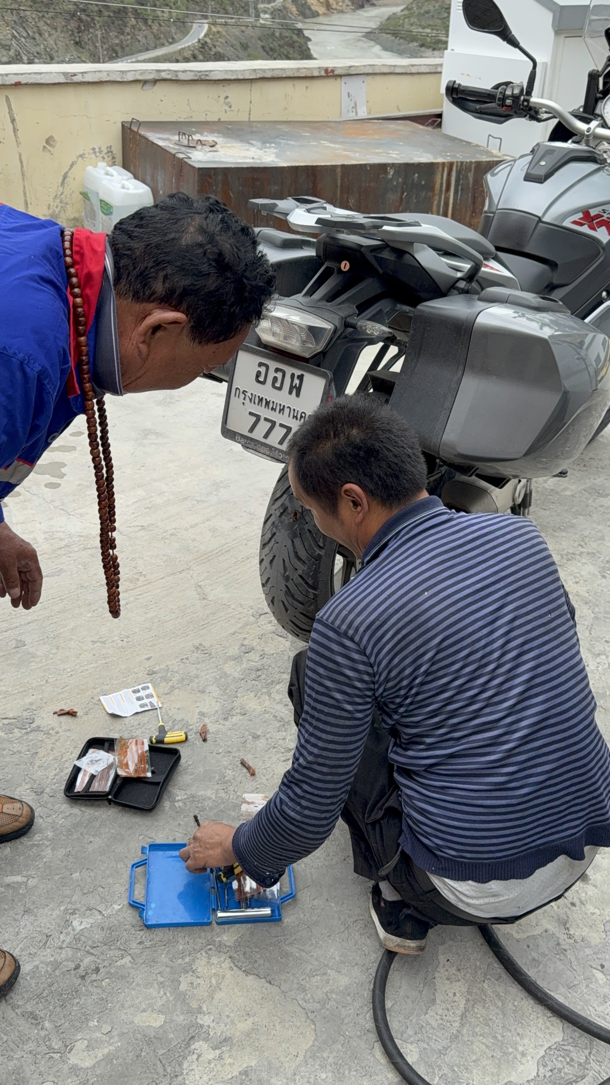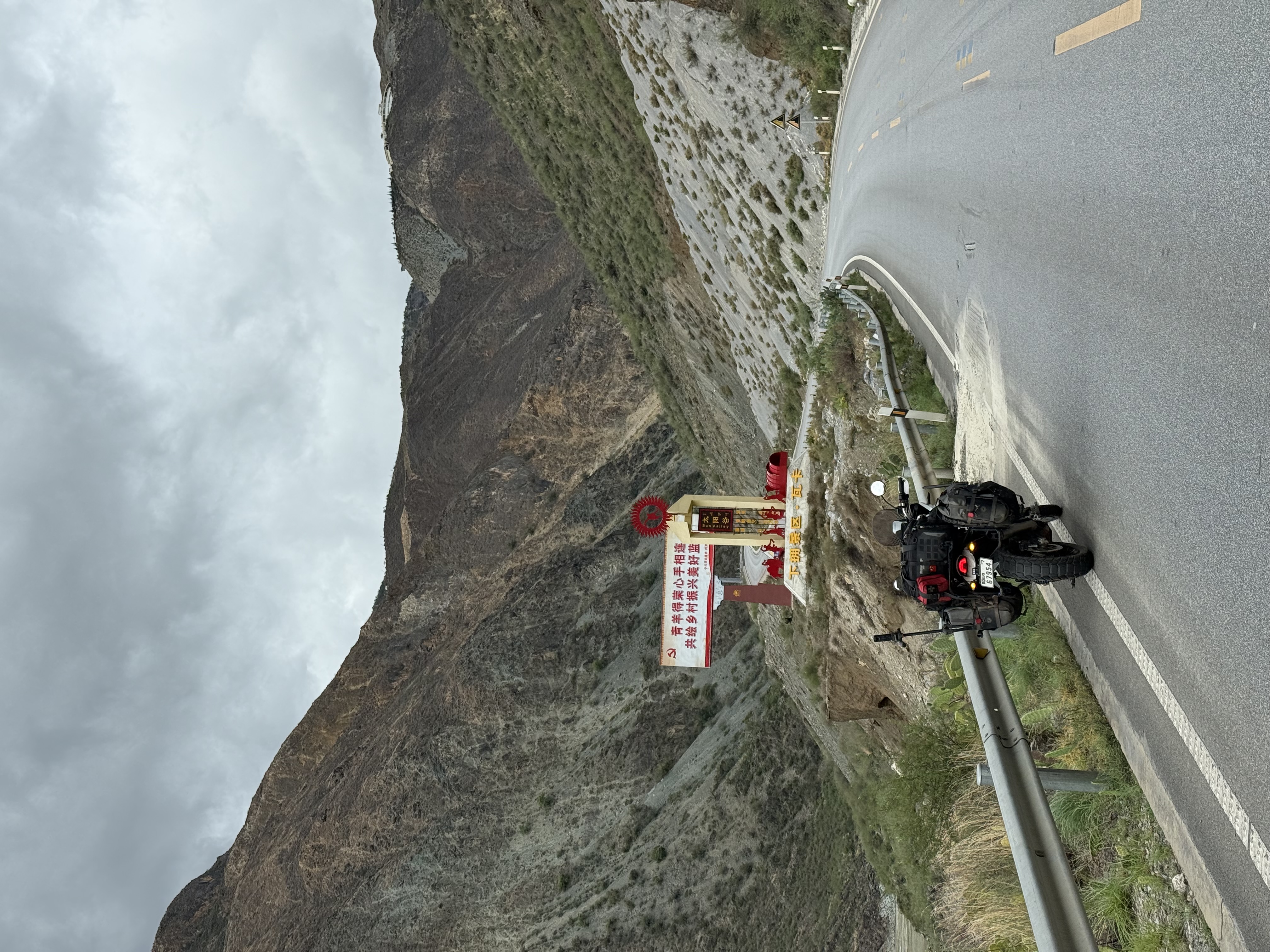 Another time, close to Xiangchen, there was a fork in the road - and as I was leading with the GPS, I continued up the correct path thinking Kiat was close behind me. Not so! And it was only one or two kilometres up the road when i realised that he was no where to be seen. I parked my bike and crossed the road to take a look…only for my bike to fall over! The Ducati Desert X side stand is far too tall for the bike, especially when it is loaded with luggage.