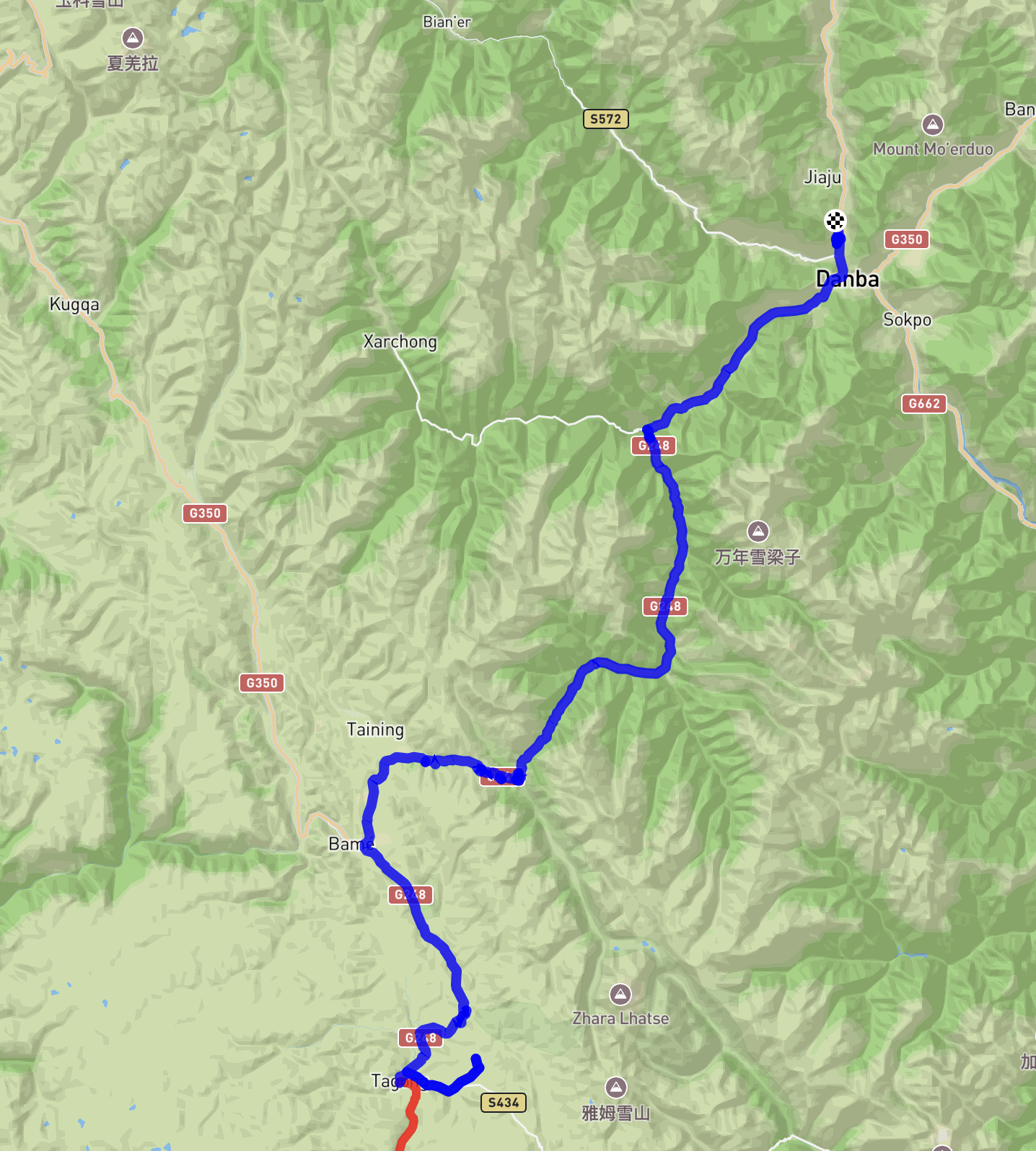 Today’s ride took us towards and then past Yala mountain, ascending the grasslands and then transitioning to steep and rocky valleys. We followed the Maoniu and Dadu rivers until reaching Danba town. From there, we ascended to Jajiu, a Tibetan town on the mountainside, overlooking the valley.