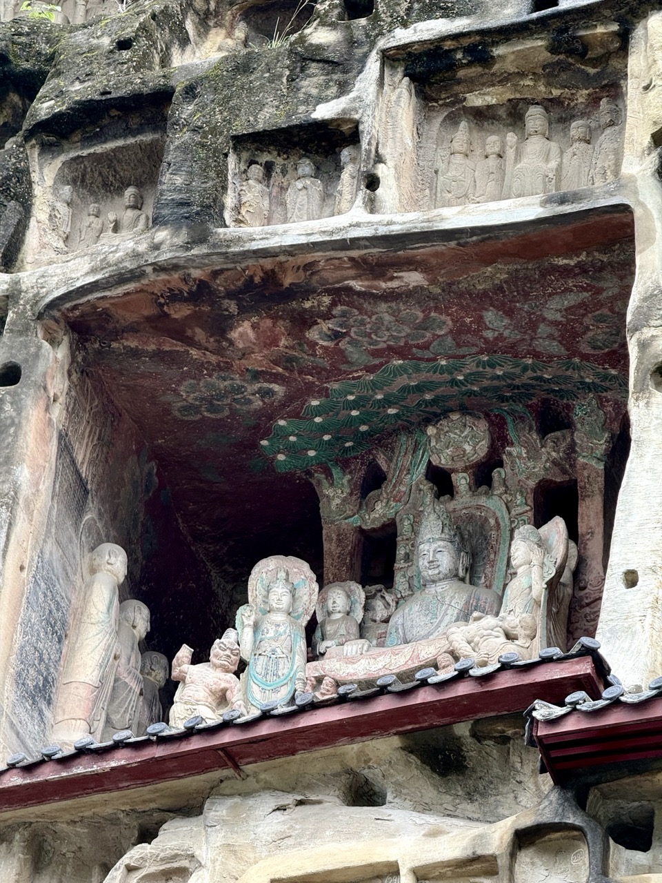 Many of the buddhas which were more accessible (closer to the pathway) were defaced…literally - they had their heads removed! Rather eerie to look at. ChatGPT thinks it was due to (1) some overzealous engineers who were blowing up the cliff to construct a road/bridge in the 30s, and (2) cultural revolution. I think the latter is probably more true because these looked like proper decapitations, rather than residual damage from an explosion. I wonder if the perpetrators regret their actions. They are probably still alive if they were teens during the revolution.