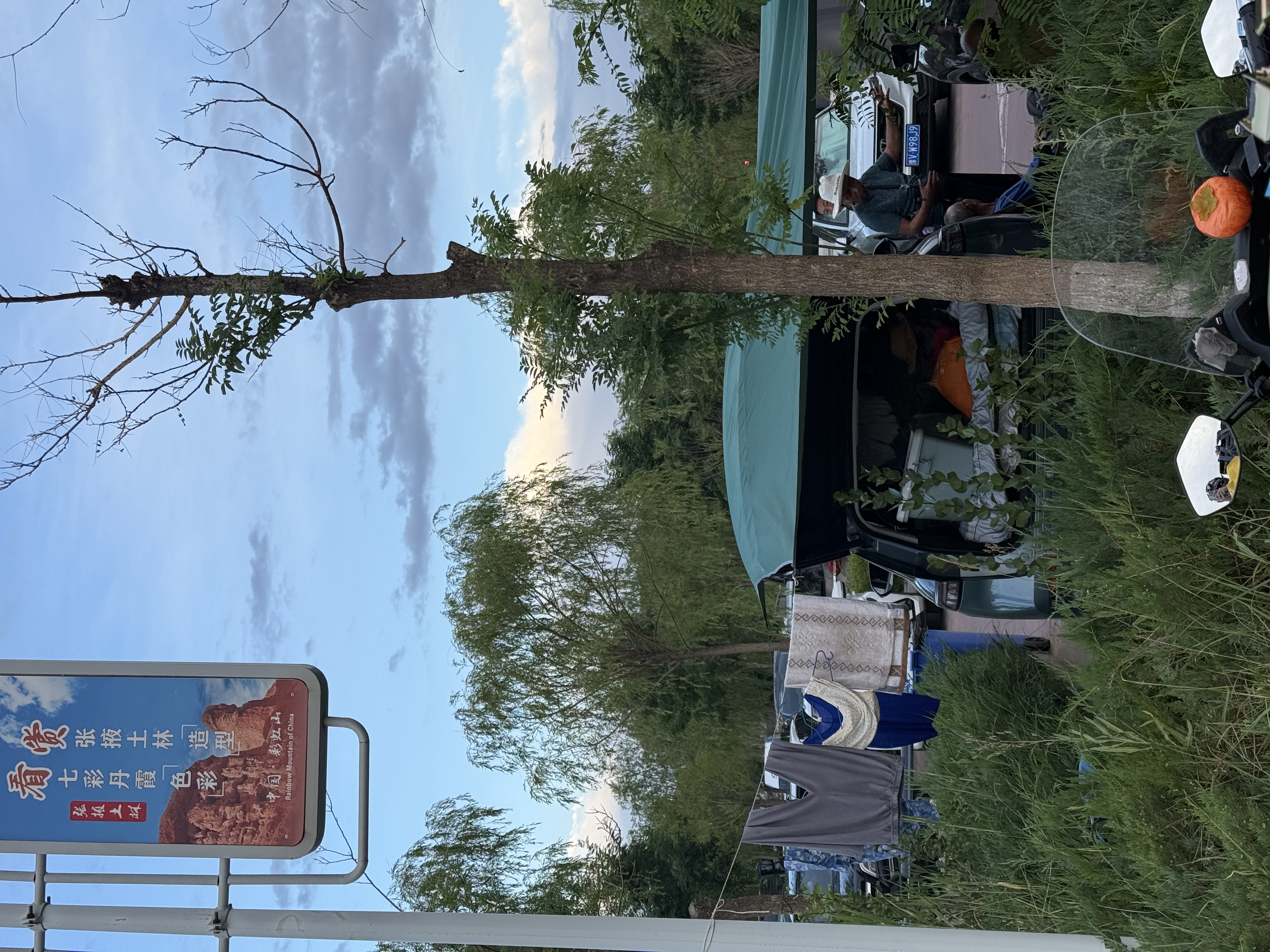 Zhangye Danxia was bustling with people, and everyone was in a hurry. Tour bus after tour bus filled the parking lot. Private cars were lined up, many with tents and canopies there. Crowds of people were walking around, streaming towards the entrance.