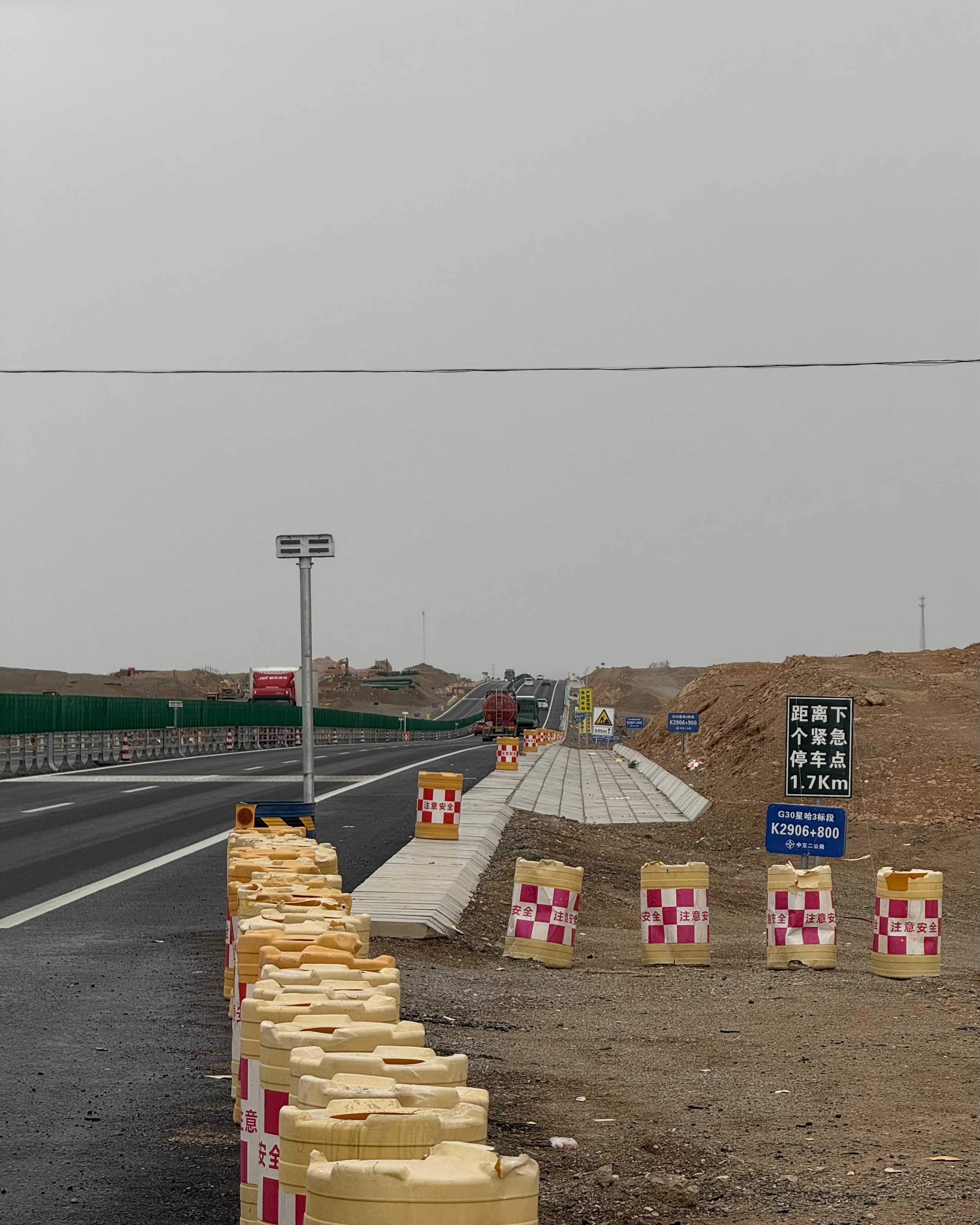 In these conditions, riding a straight road means riding at a reasonable lean (leftward in my case) to keep the line pointing straight. The wind is strong enough to push an unprepared rider across two lanes very quickly - into a fence or off the road entirely (I had heard a story of a rider who was blown off a road into a ditch in Xinjiang the other day).