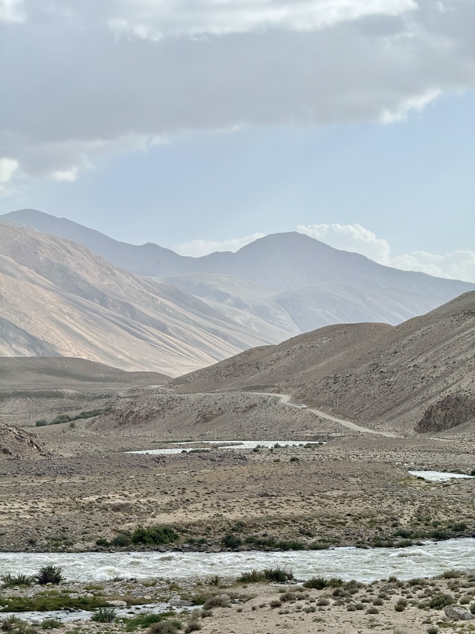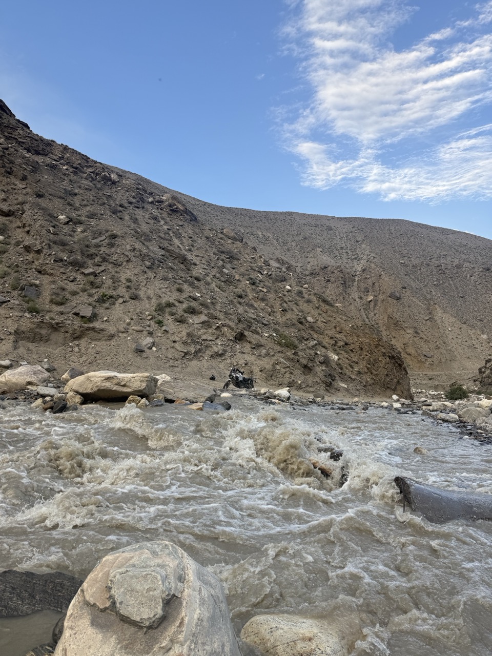 Then we set off for the Wakhan Valley. The start of this road was brutal. Kilometres of inescapable ridges that ran horizontally across the road, making the ride incredibly bumpy. I find that above 60KPH, suspension would kick in and smooth the ride. Then came patches of loose gravel and sand, where the ride was constantly on the edge of traction. After about 45 minutes, I passed by a Honda verdadero(?) rider. He was an older pot bellied Russian and had a look of shock on his face, like he had just gone through a harrowing ordeal. I asked him how the road was, and through our translator apps, he mentioned that there was a river crossing that was very difficult to do up ahead. He also mentioned that the road was bumpy the whole way to Khorog (about 3-400kms total i think).