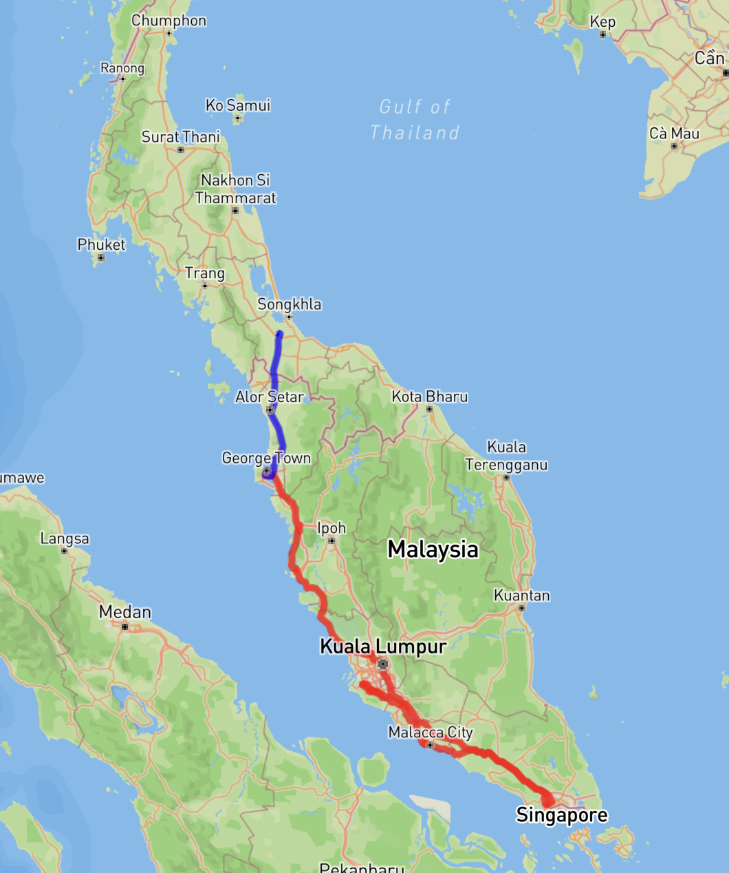 It was a short ride; about 1 hour and 30 mins and ~175KMs to the border, with a reasonable amount of commercial traffic. That meant weaving between each lane and the shoulder for most of the way to make the distance and reach Thailand by 12PM. We were operating on a tight schedule, as after lunch, the afternoon shift at Thai customs at Sadao changes, and it is ‘a lot harder to get through’ according to our agent (i.e. more grease required vs the morning shift).