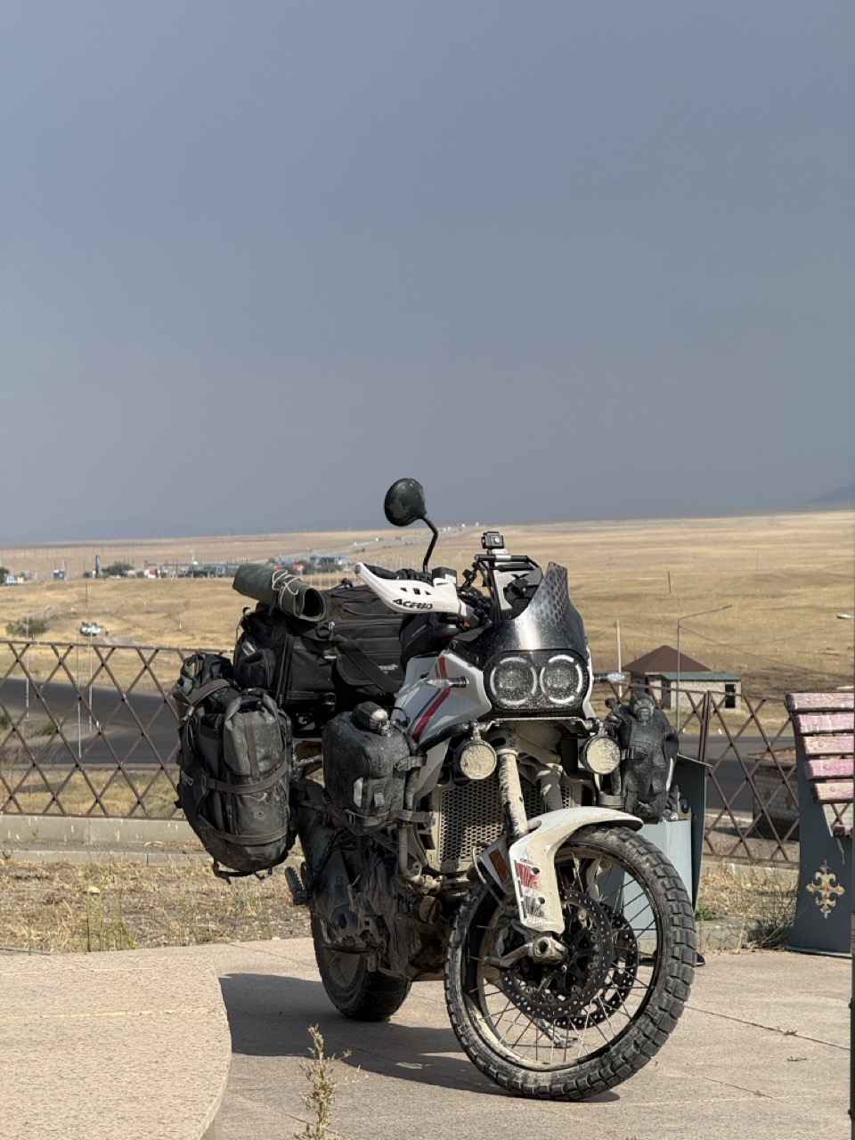 (1): it is not the best situation. Broken windscreen meant this wouldn’t be great in the event of getting rear ended (or otherwise flying over the handlebars). Leaking forks (with oil over the brakes) also not good; less predictable braking performance. (2): could i fix it? Not really. Broken windshield i could only really superglue some parts together (i also did not want to risk it getting blown into pieces in the wind), until a replacement could be found. Same goes for the fork seals. The closest Ducati dealer was in Almaty, and even they did not have replacement parts ready. (3): this was a judgment call. Given it was a short journey predominantly on the highway, it was reduced risk (predictable braking performance is probably most important when going hard around corners). Likewise for the windscreen; just don’t get rear ended!