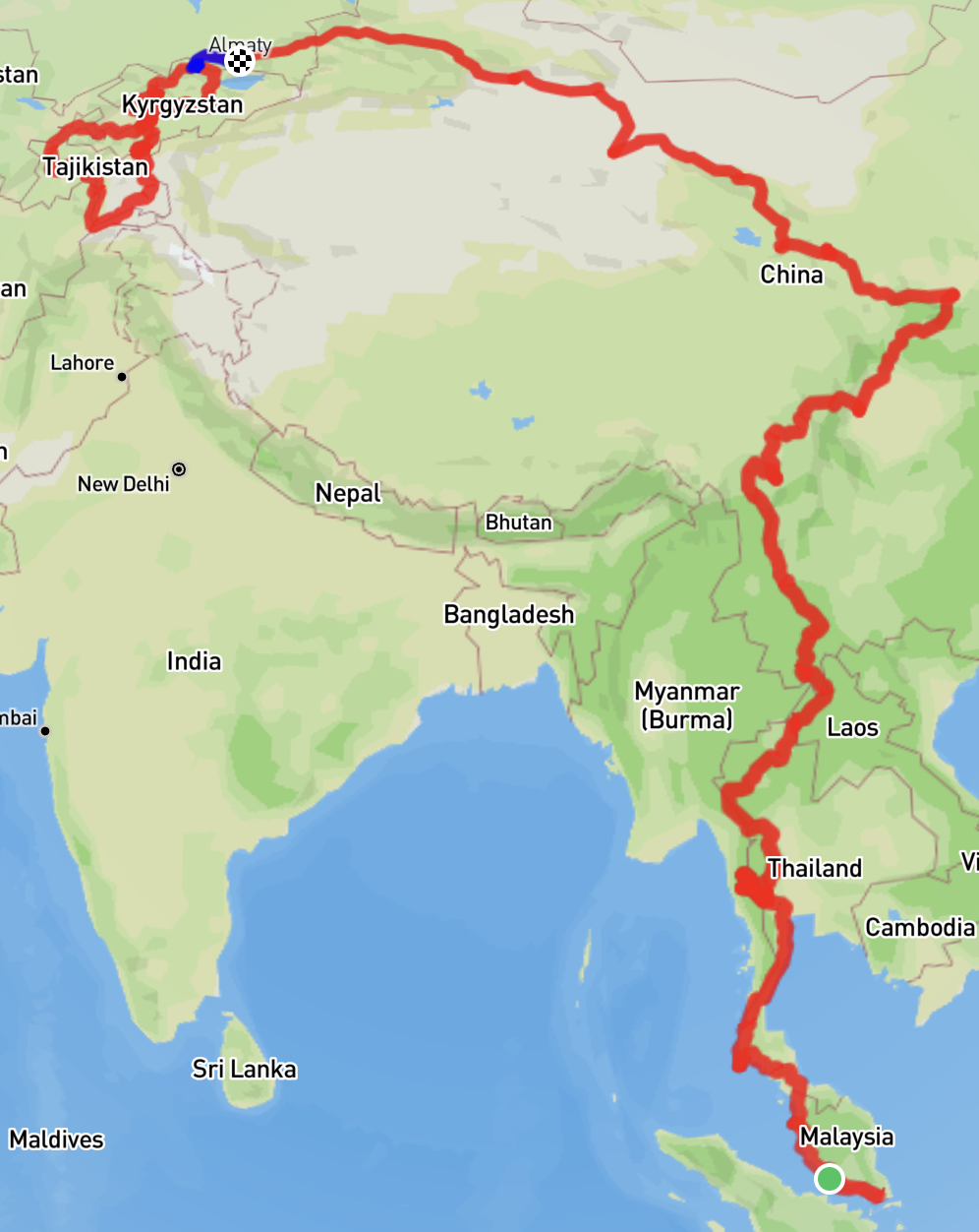 And so concludes my big trip, from Singapore to the Silk Road. Today I reach the final destination of my trip; Almaty, after riding through continental South East Asia, China, and through several Central Asian countries.