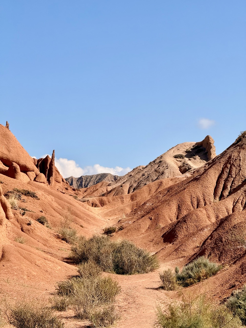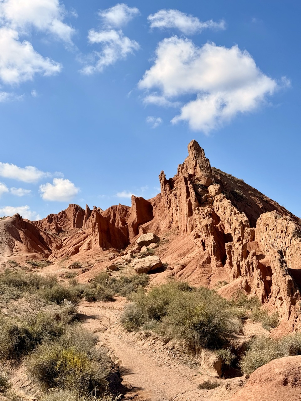 I reached fairytale canyon, one of the tourist destinations along the way at noon. At the gate, a local asked for 50 KGS (~0.50c) for entry. I hadn’t bothered to get local cash just yet, so I offered him dollars…which he refused. I asked if he would change money with me, after which he replied telling me to go to the bank (which would have been a long way away). It was only after I made it very explicit that I’d give him a good rate (50KGS/1,abouta901, about a 90% premium) that it finally clicked what I was asking for, and we exchanged the grand sum of 5 so i could pay for entry.