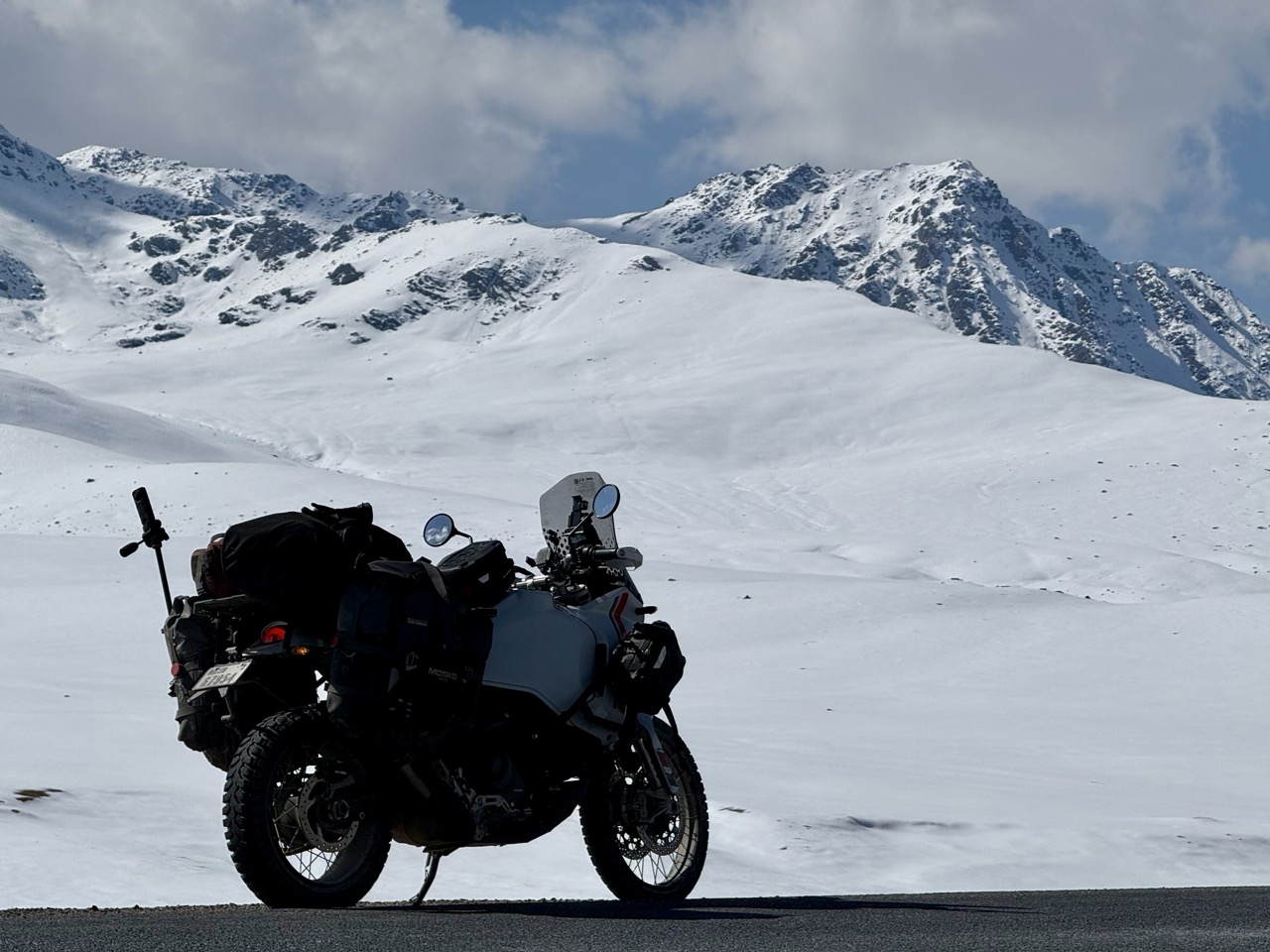 The rest of the day’s riding was interesting in that it was riding the exact same road, only ~2.5 months later. I was curious as to how the ride would be different…and wow was it different: Roadworks which were in progress the first time I passed, were largely complete. Roads were very fresh and very nice. The seasons had changed. Mountains went from being cool dark brownish green to snowcapped. The temperature was very different; previously ~10-15 degrees. This time it was 2-10 degrees. I saw a few new projects; a small glamping site of ~10 tents had been set up.