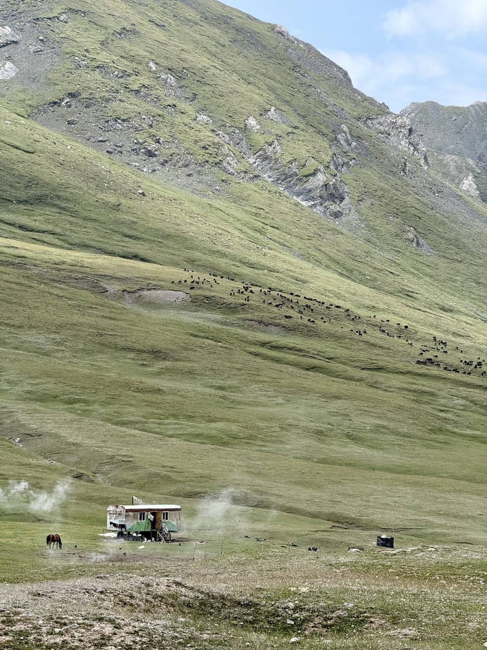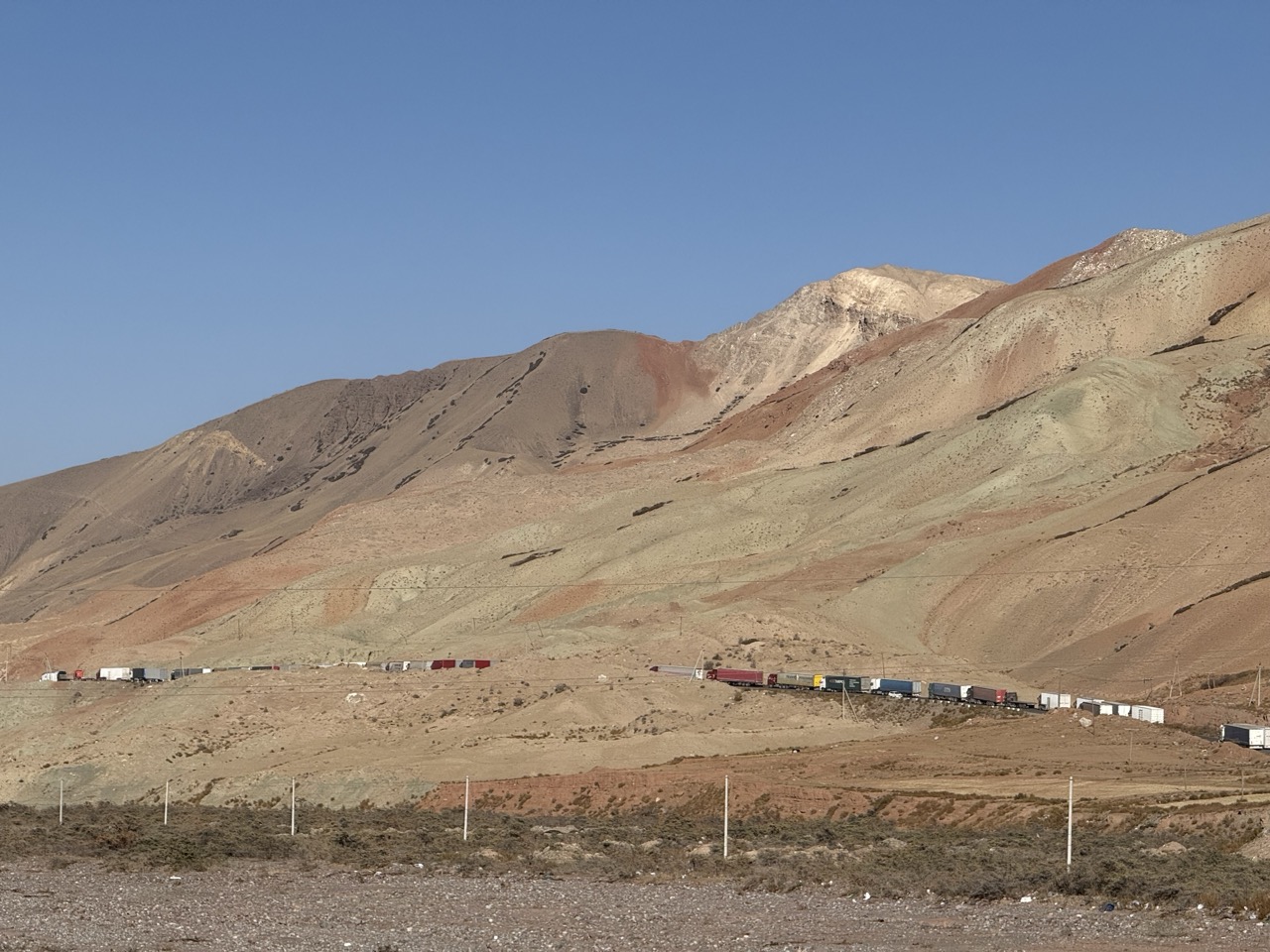 The route was east along the grassy highlands, with the Pamir range to the south, and some hills to the north. The only other traffic along the way was commercial traffic, but mostly in the reverse direction.