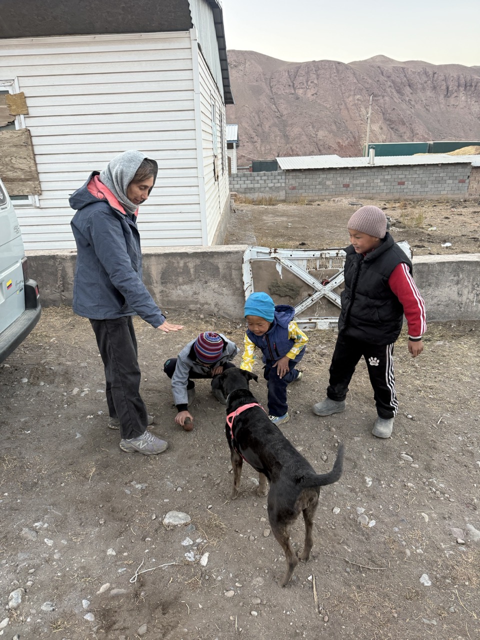 Neighbourhood kids playing with Alex and Mauricio’s dog Shae