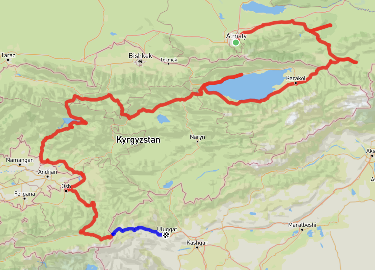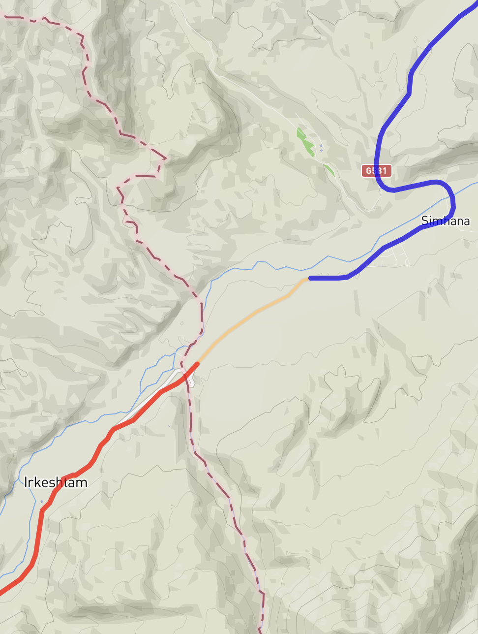 I realised that this morning, my bike probably has an issue with the clutch. It engages way too early, and while this was manageable until now, by this morning it has gotten to the state where it is now permanently engaged. This is rideable, but not ideal, as iIt makes switching into neutral while the engine is on quite difficult/impossible (so I need to switch the engine off to engage it in neutral), and the bike slowly creeps forward when I have the clutch pulled all the way in, which takes some getting used to. I will get this looked at once I reach Kashkar tomorrow. [Note while I write this: Florian joined me at the lobby and diagnosed this issue as air bubbles in the hydraulics]