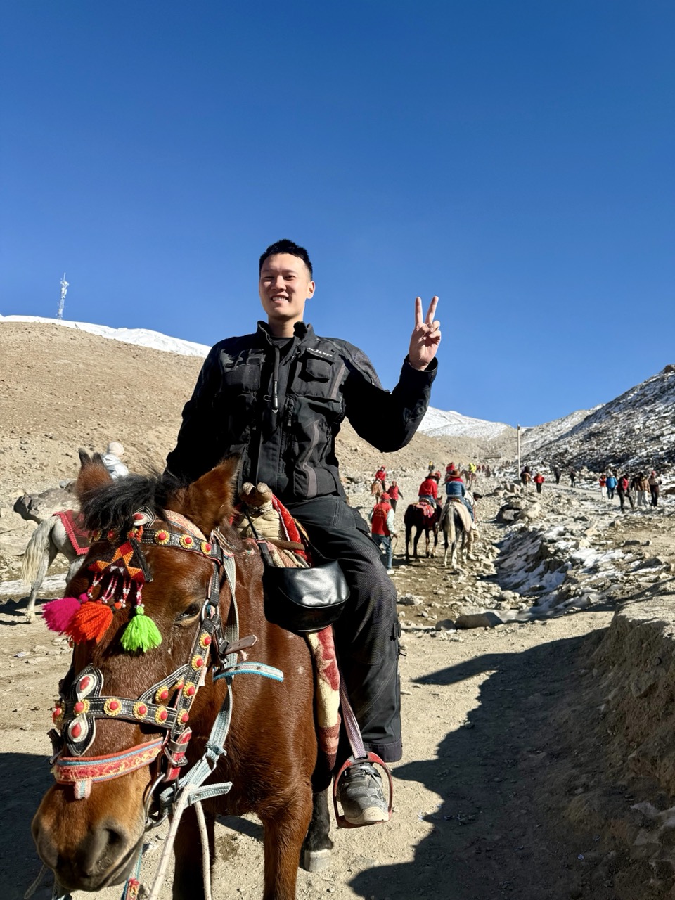 It was reasonably fun, although not the most mindblowing experience. It involved an initial visitor centre where you can buy tickets, a 12KM mini bus trip close to the summit (it was fun chatting to the aunties and uncles here, who were very curious about my trip), then a ~1km climb to the glacier itself. I was feeling lazy (and the altitude was 4600 MASL so I didn’t really want to exert myself before riding once more) so I opted to ride a horse up to the glacier, and then walk down.