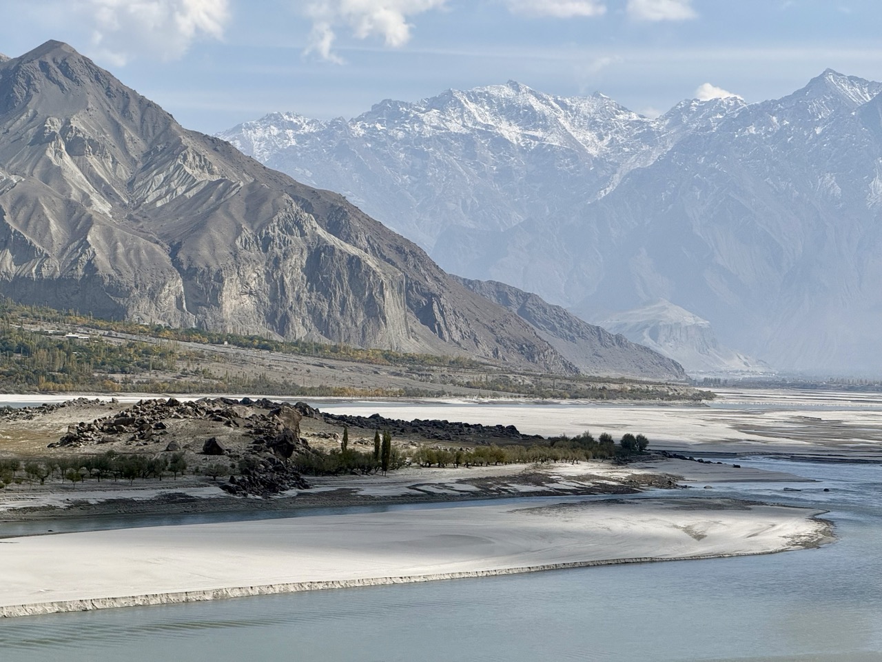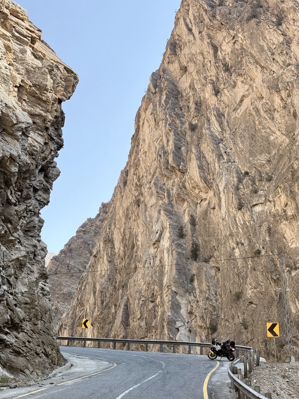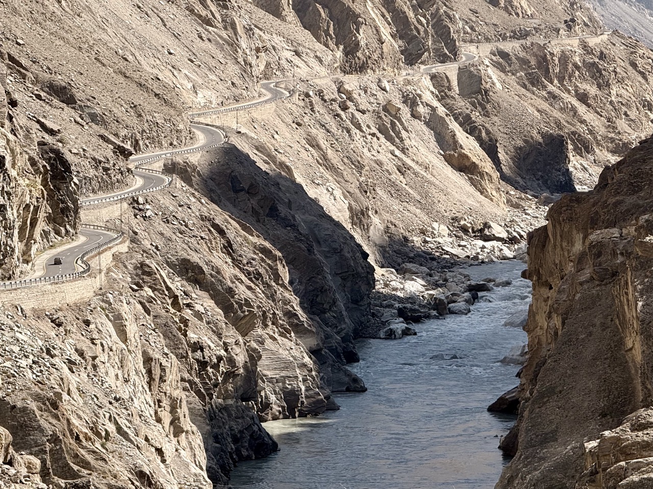 The road to Skardu branches off from the Karakorum Highway, about 40km south of Gilgit and is hewn along the valley created by the Indus River. It features fresh asphalt, laid in 2021, and runs along cliff edges for ~160km. Continuing along the road leads to the town of Khaplu which is supposedly very beautiful, and much closer to the LoC (this is also a destination most riders end up visiting).