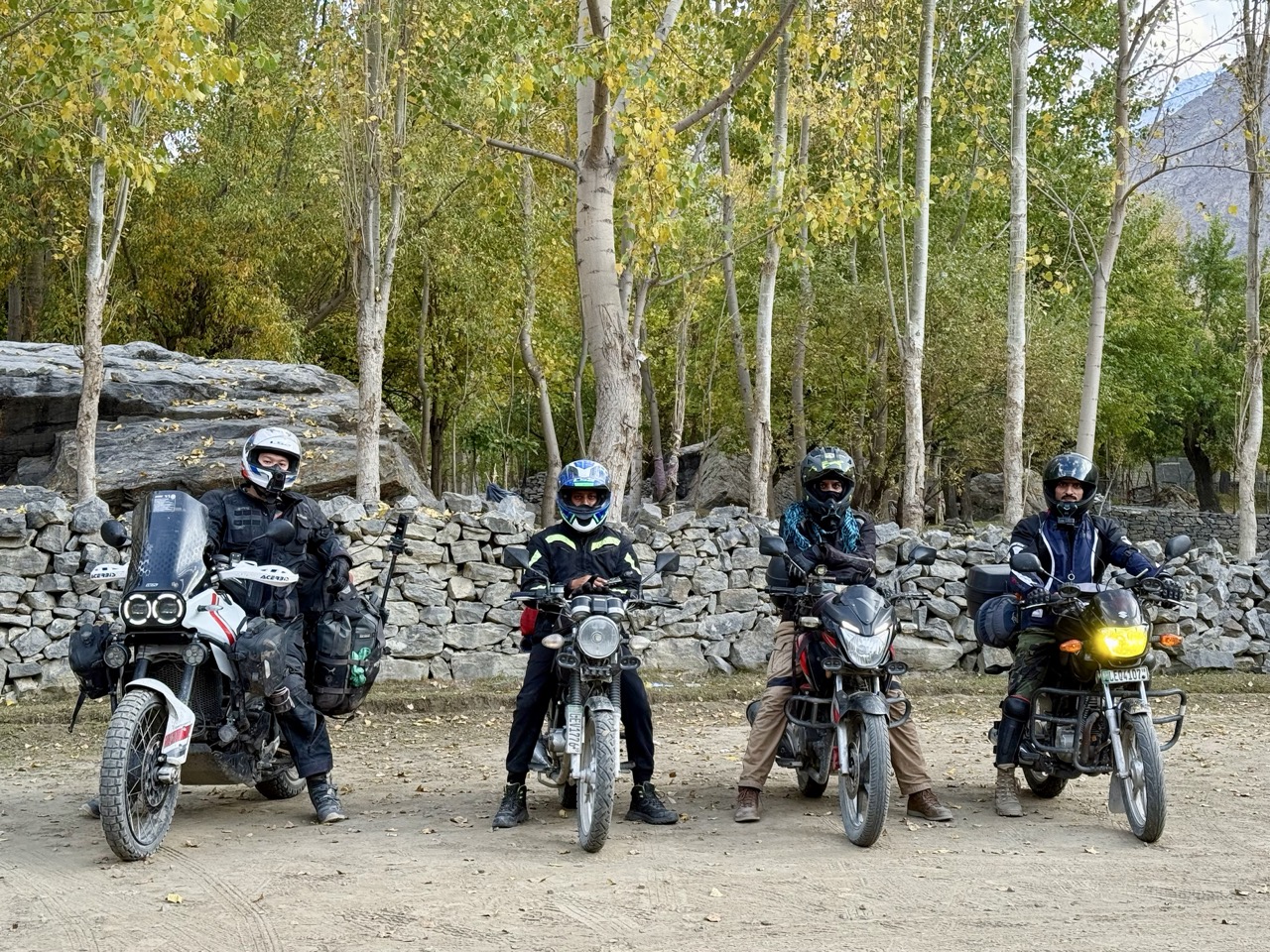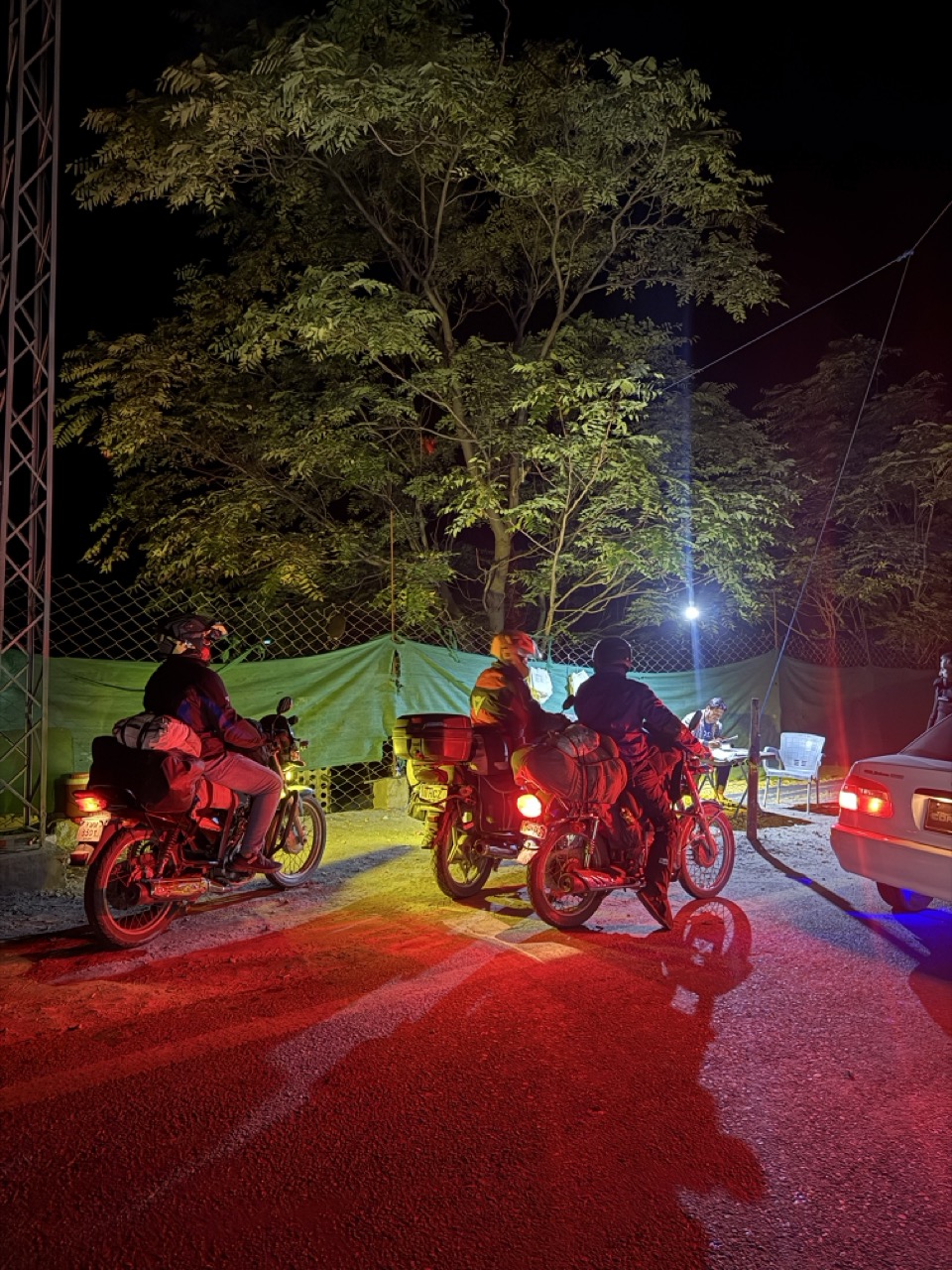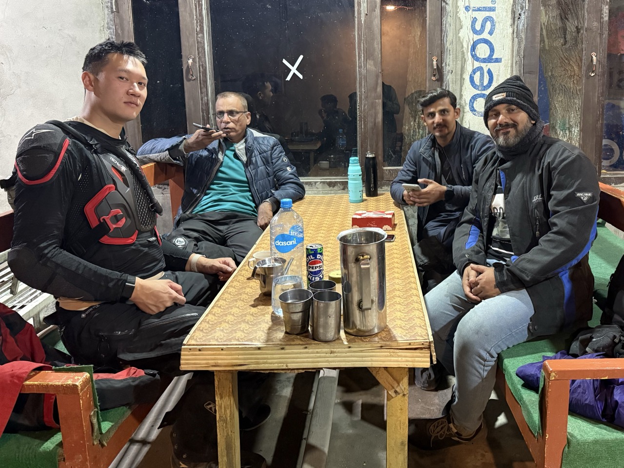 As the sun was setting, I stopped by a hotel a few kilometres out from Skardu. I wanted to check their availability so i had an option to stay at for the evening, but equally I still felt an itch to continue on. Shortly up the road were 3 bikers with luggage and helmets. I stopped to chat to them and find out their plans.
