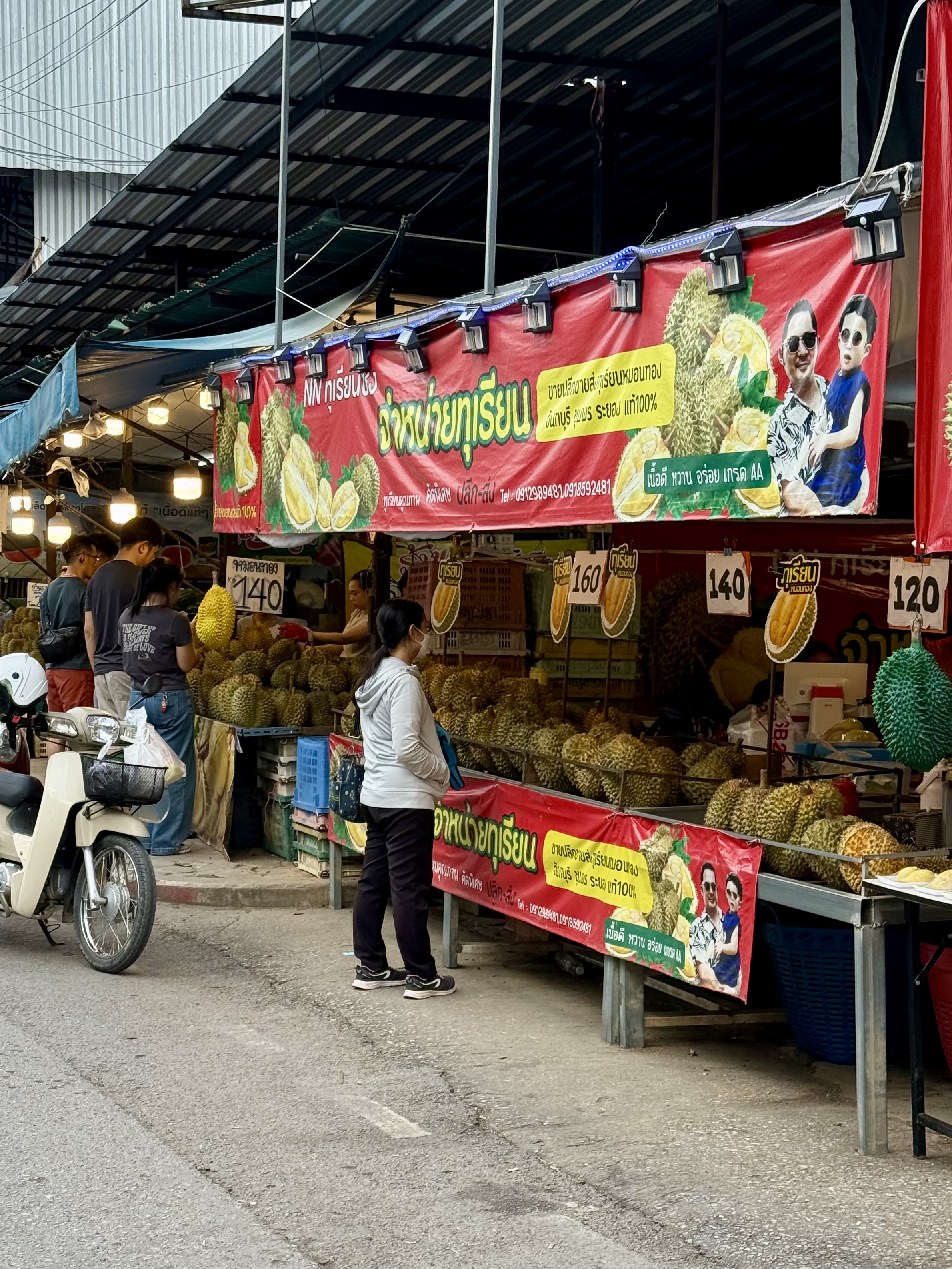 One of many durian stalls. Thai durian tends to be much larger in size.