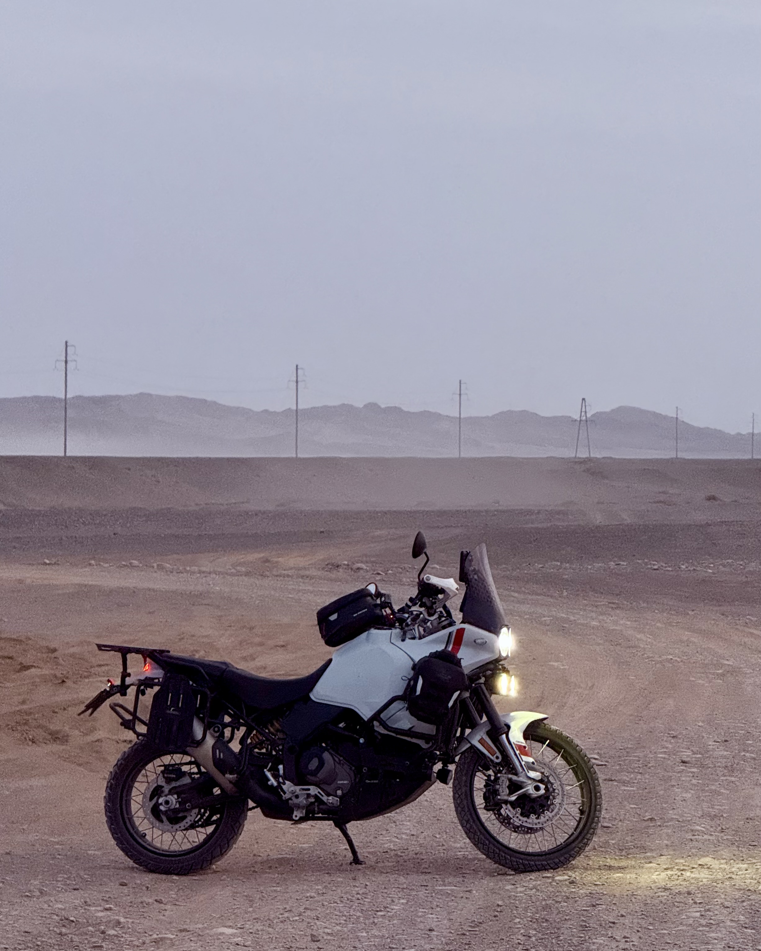 After a cigar and some dinner (did I mention that I hadn’t had any food all day), I ventured out for a ride at sunset. The hotel staff recommended I ride out along the desert highway, and it was stunning. I saw a few 4WDs venturing out from the desert so I followed their tracks to the start of a “desert highway”.