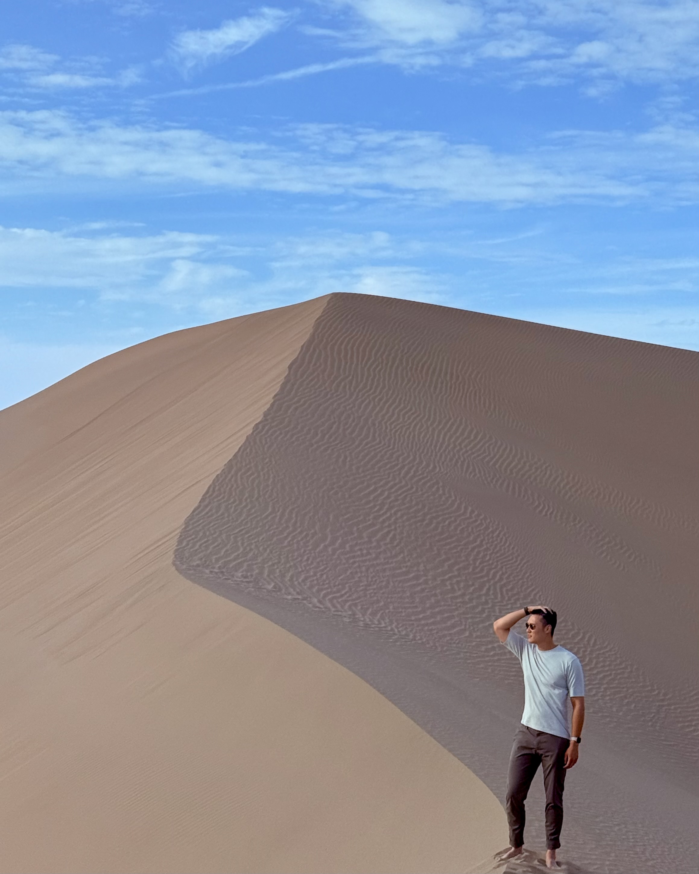 We paused on a high dune to watch the sunset, the driver added air back into the tires, and then before long I was back at the hotel.